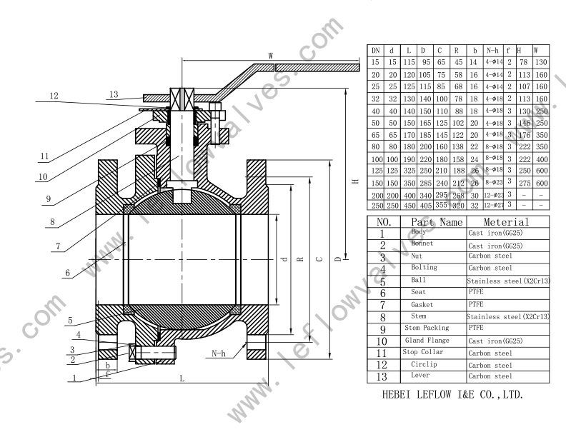 Leflow’s DIN Cast Iron Ball valve has 1pc 2pc and 3pc model, Full bore and Reducing bore.PN16 rating.DN15-DN100 conforms to EN558-14,DN125-DN250 conforms to EN558-15.