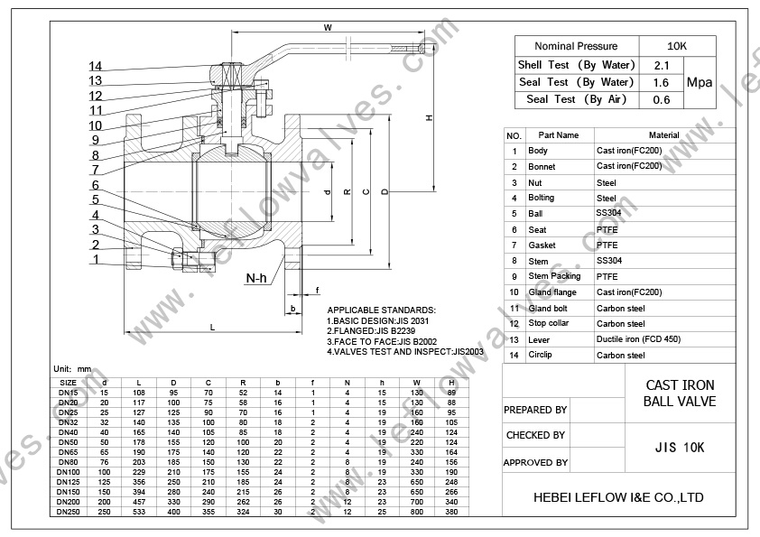 Leflow’s JIS Cast Iron Ball valve is 2pc floating type with 10K flange.