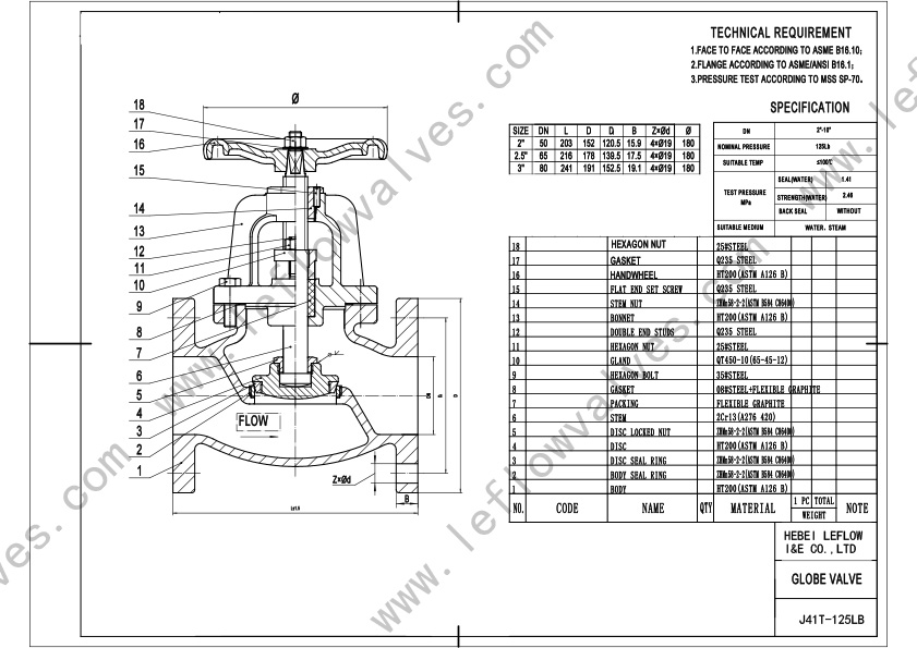 Leflow is offering Straight and Angle type globe valve, Size 2” to 12”,The Sealing is commonly bronze, Flow direction is from bottom to up. The stem is usually brass, because of its anti-corrosion. Fusion bonded epoxy is common coating.