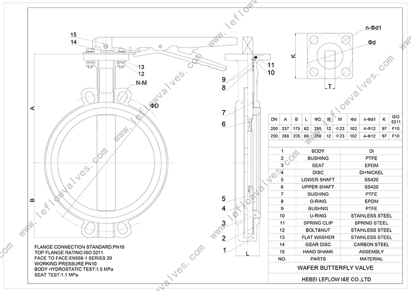 Disc Material:DI+Nickle/CF8/CF8M/Aluminium Bronze/DI+PTFE