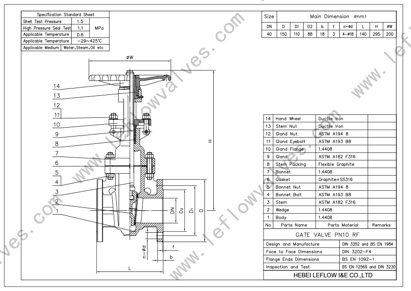 Leflow provides high performance gate valve products, including Wedge gate valve, Pressure seal gate valve, Knife gate valve, Flat gate valve and Bellow seal gate valve. The OS&Y stem is most popular, but Non-Rising Stem type is also in our scope. Both flexible and Solid disc are available. For big size or Big pressure valve, By-pass design is optional.Below seal gate valve also falls in our ability.