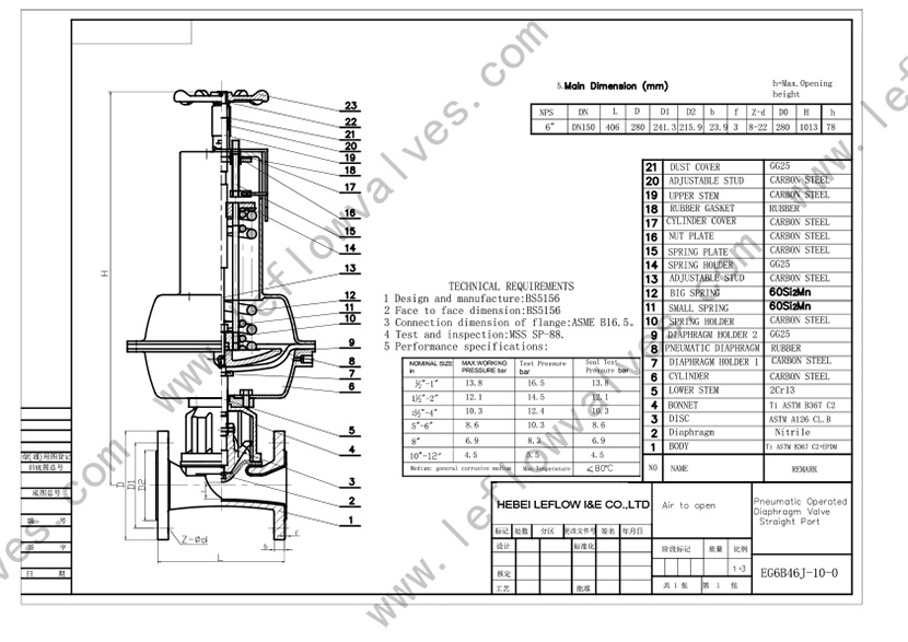 Body strength test:1.5 times rated working pressure;